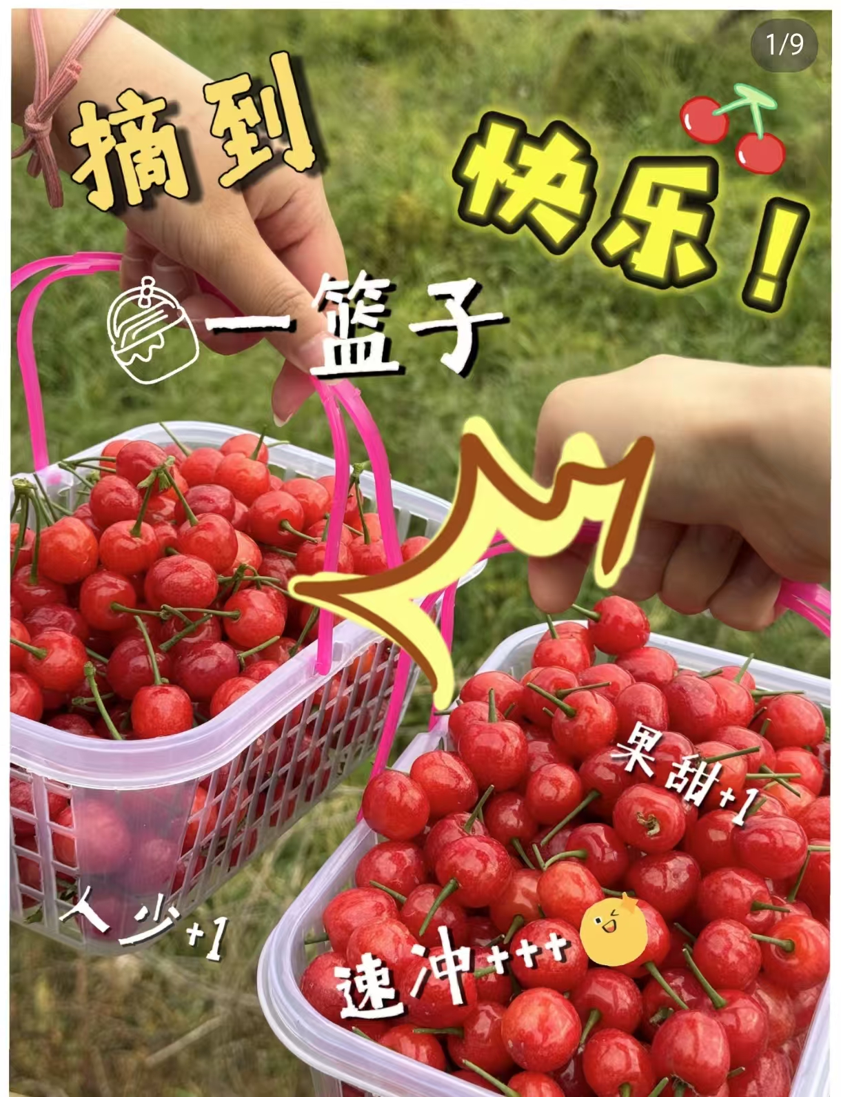 走進(jìn)櫻桃園,紅潤(rùn)飽滿(mǎn)的果實(shí)綴滿(mǎn)枝頭,猶如點(diǎn)點(diǎn)繁星。大家三兩結(jié)伴,一邊采摘品嘗,一邊拍照留念,果園中洋溢著輕松愉快的氛圍。
